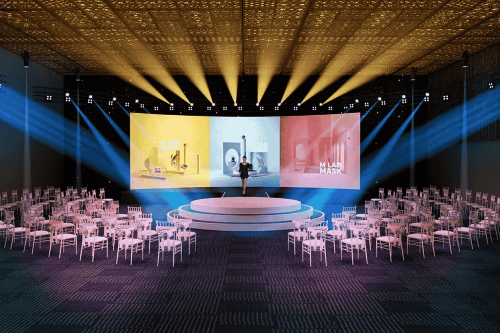 • Event design: Stage setup, lighting, and décor that reflect your brand colors and identity.